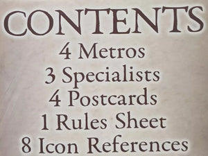 This mini expansion adds new 4 metro boards, 3 new specialists, and 4 postcards (featuring new metro destinations).
